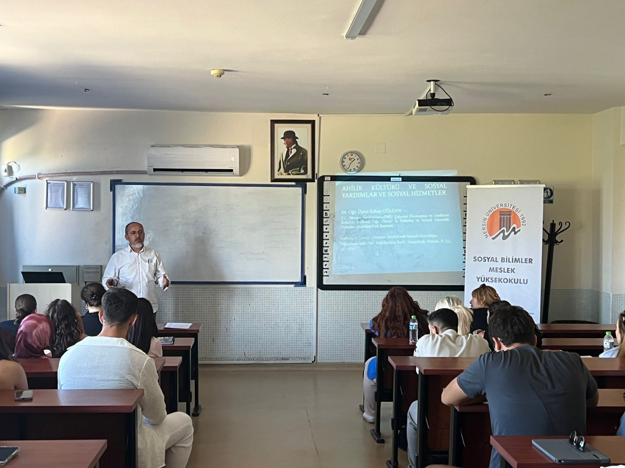 Mersin Üniversitesi Sosyal Bilimler Meslek Yüksekokulu, Kariyer Merkezi iş birliğiyle 38. Ahilik Haftası kapsamında bir konferans düzenledi. Etkinlik, 6 Ekim 2025 Pazartesi günü Sosyal Bilimler MYO Derslik 10’da gerçekleştirildi.