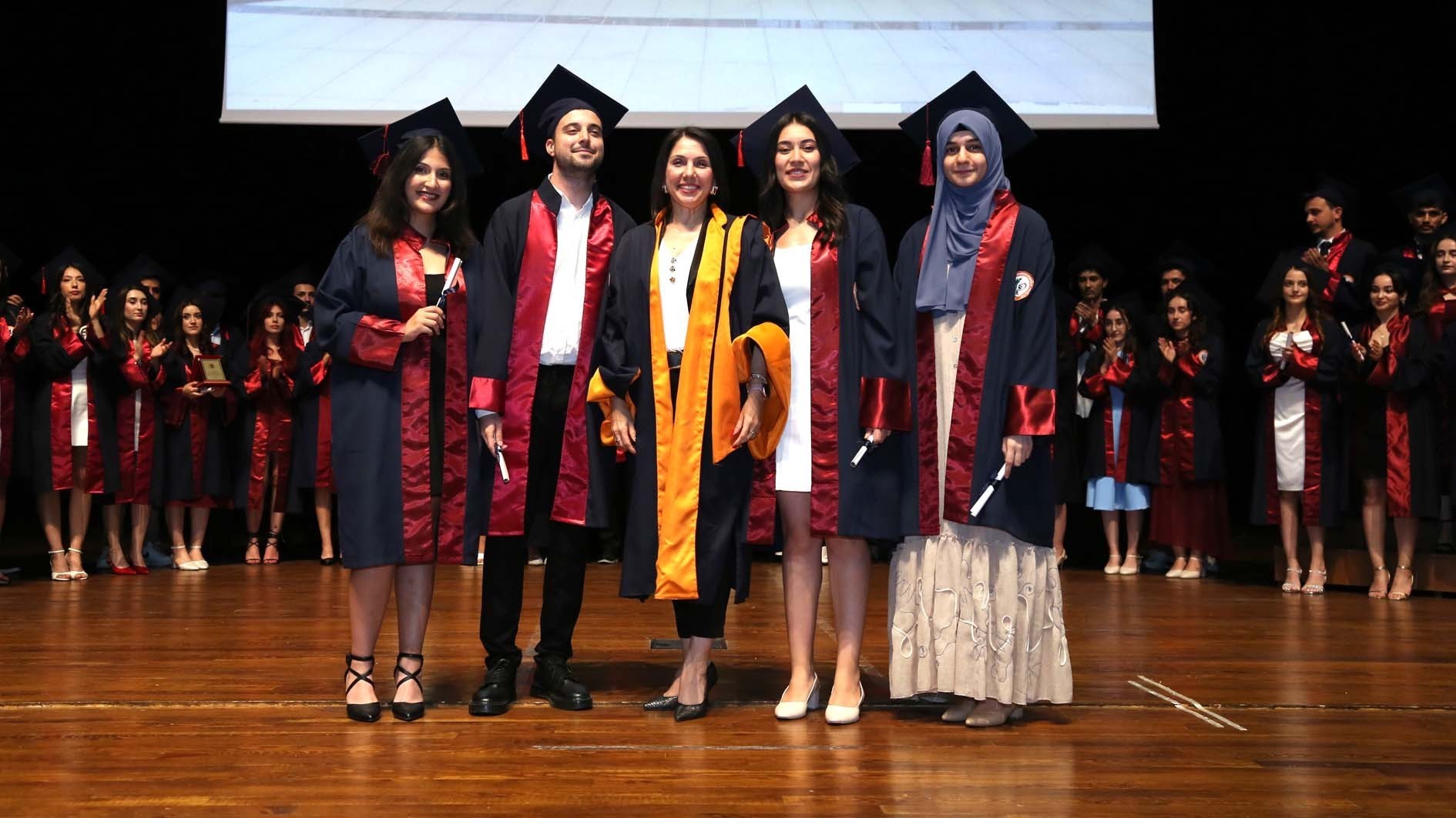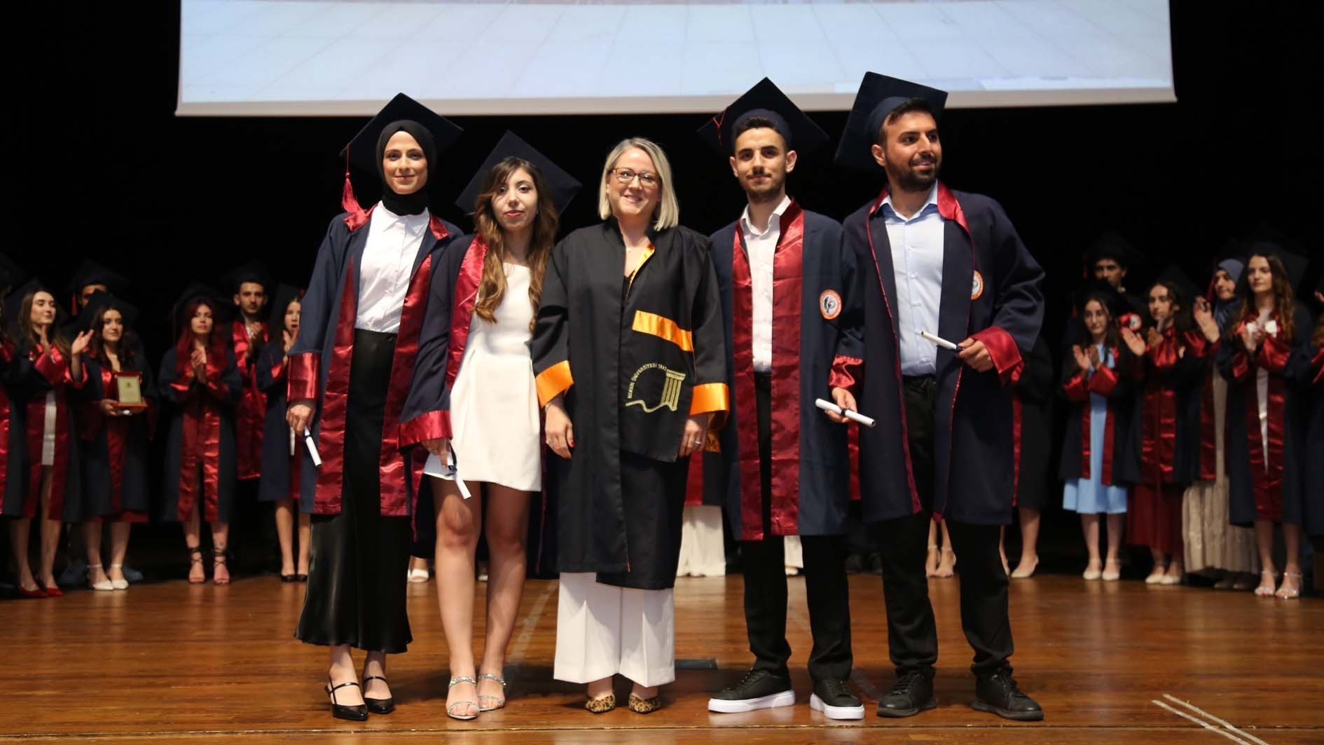 Tören, mezun öğrencilerin keplerini havaya atmasıyla sona erdi.