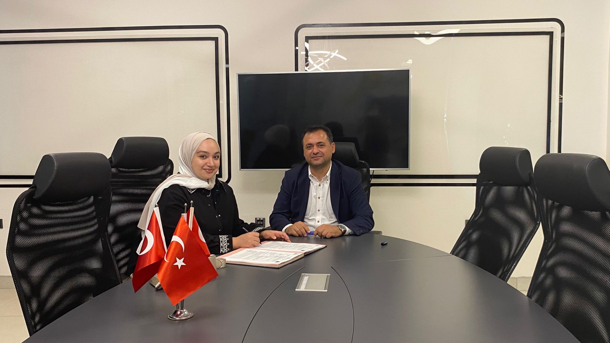Merkezimizin sunduğu imkânlardan faydalanacak olan yeni girişimcimiz Sana MUTRAJİ, Merkez Müdürümüz Dr. Öğr. Üyesi Gürbüz ÇOMAK ile karşılıklı olarak sözleşme imzalamışlardır.🤝