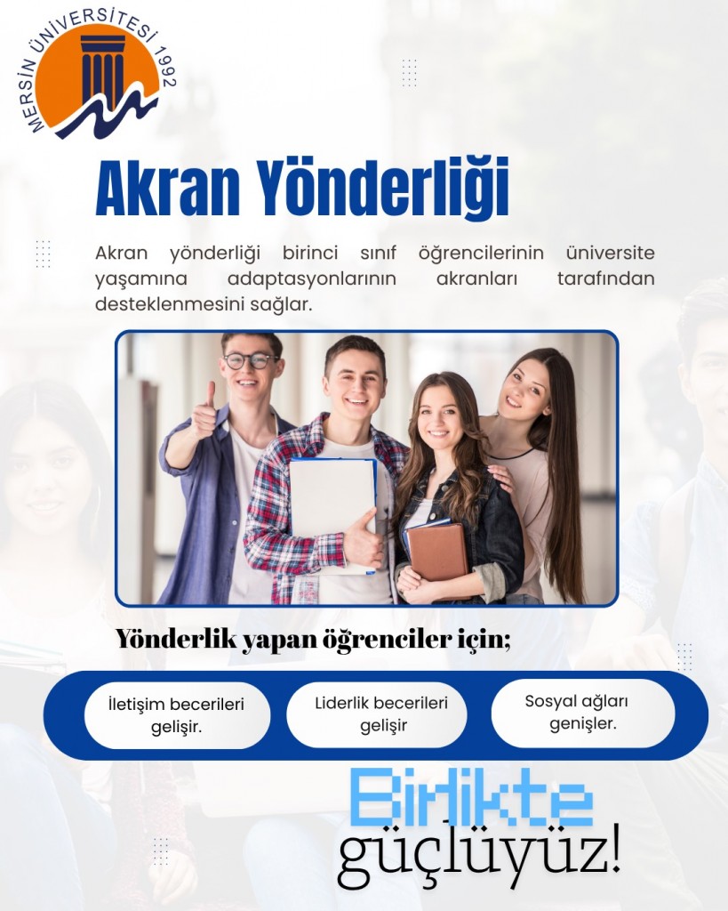 Akran Yönderliği Programı, fakültemizde öğrenciler arasında güçlü bir iletişim ağı oluşturmayı, dayanışma kültürünü artırmayı ve akademik başarıyı desteklemeyi hedeflemektedir.