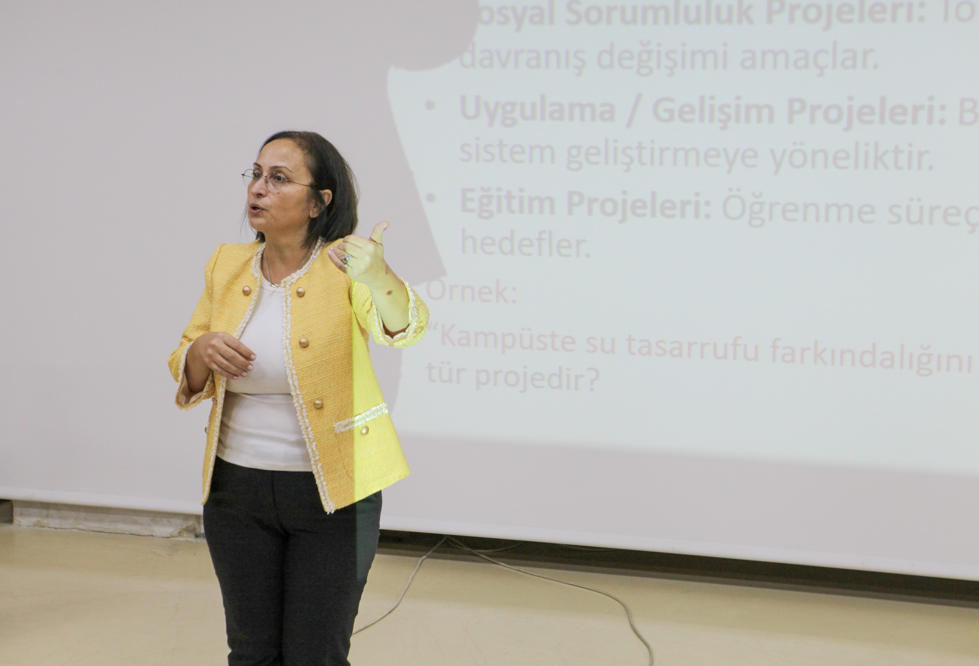 Prof. Dr. Tüzün Rad, sunumunda TÜBİTAK 2209-A Programı’nın amacı, başvuru koşulları, proje önerisi hazırlama süreci ve değerlendirme kriterleri hakkında ayrıntılı bilgiler paylaştı. Ayrıca araştırma sürecinde dikkat edilmesi gereken etik ilkeler, proje planlama aşamaları ve akademik yazım kuralları üzerine örneklerle açıklamalarda bulundu.Eğitim sonunda öğrencilerin soruları yanıtlandı ve katılımcılara proje yazımında dikkat edilmesi gereken noktalarla ilgili uygulamalı öneriler sunuldu.