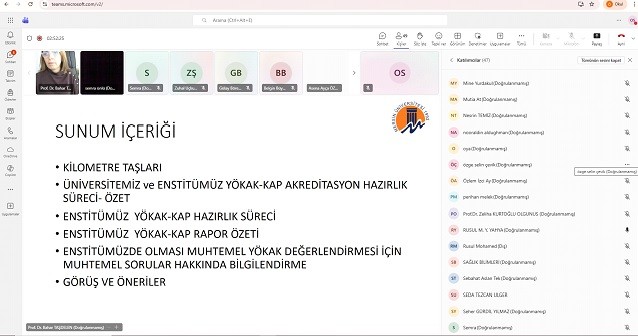 Kalite Yönetim Süreçleri kapsamında, Enstitü Müdürümüz Prof. Dr. Bahar TAŞDELEN tarafından 03.11.2025 tarihinde saat 13.30’da enstitümüz öğretim üyeleri ve öğrencilerine yönelik çevrim içi bir bilgilendirme sunumu gerçekleştirilmiştir.