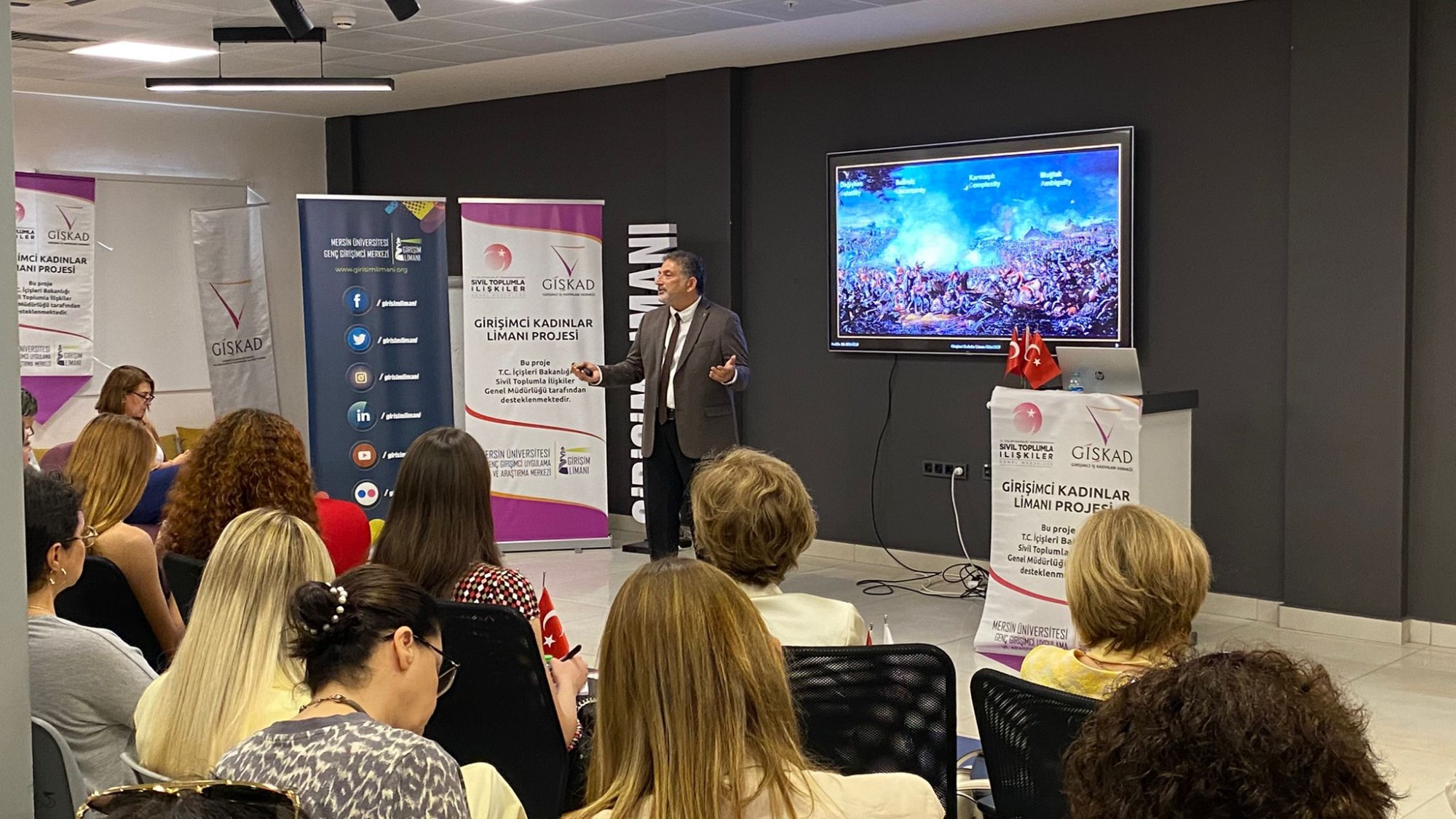İçişleri Bakanlığı Sivil Toplumla İlişkiler Genel Müdürlüğü’nün desteğiyle, Girişimci İş Kadınları Derneği (GİŞKAD) yürütücülüğünde ve Mersin Üniversitesi Girişim Limanı iş birliğiyle hazırlanan “Girişimci Kadınlar Limanı” adlı projenin eğitim süreci 04.11.2025 tarihinde başladı!