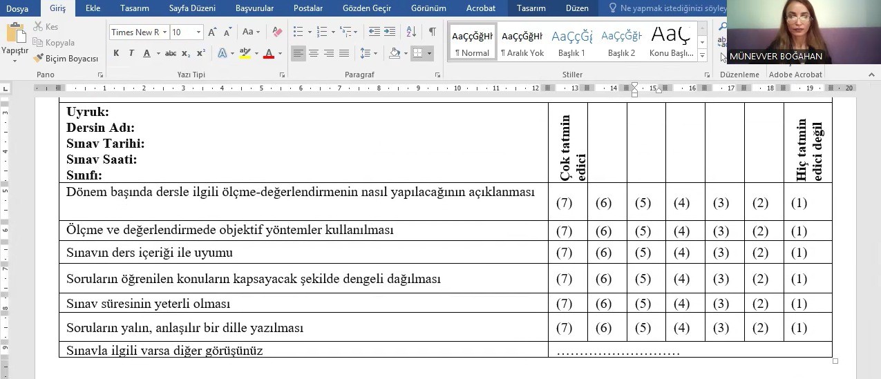 Fakültemiz Ölçme ve Değerlendirme Komisyonu tarafından, derslerde kullanılmakta olan ölçme ve değerlendirme formlarının tanıtımını gerçekleştirmek amacıyla, fakültemiz öğretim elemanları ile diğer birimlerden fakültemize ders vermek üzere görevlendirilen öğretim elemanlarına yönelik çevrim içi bir bilgilendirme toplantısı düzenlenmiştir.