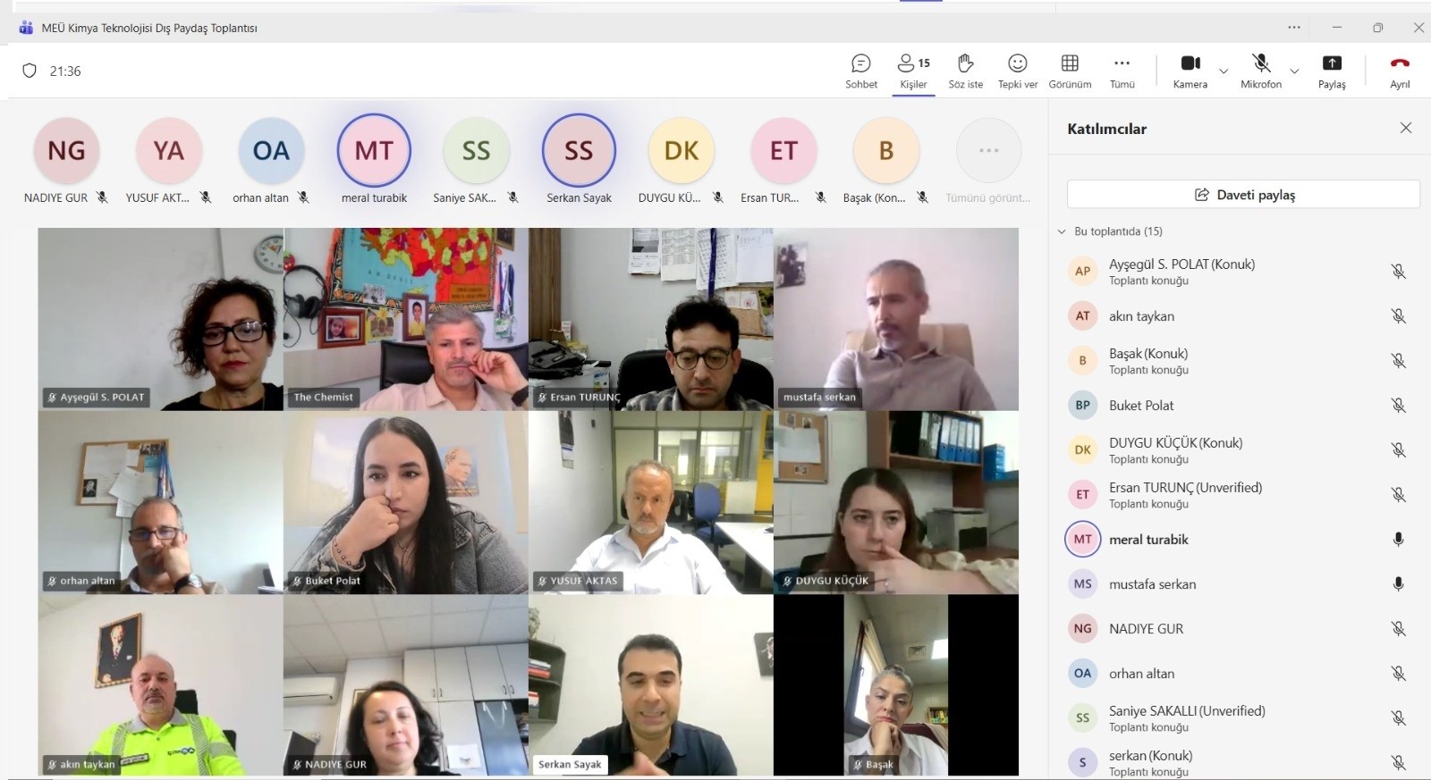 Kimya Teknolojisi programı olarak 11.11.2025 tarihinde bölüm başkanımız Prof.Dr. Meral TUBARİK moderatörlüğünde, bölüm öğretim elemanlarımız ve dış paydaşlarımızın (ÇİMSA Çimento San. Tic. A.Ş, SASA – Erdemoğlu Holding, Mersin MESKİ, AVES Yağ ve Gıda San. A.Ş., Türkiye Şişe ve Cam Fabrikaları A.Ş. (Teknoloji), Türkiye Şişe ve Cam Fabrikaları A.Ş. (Laboratuvar), Özel MSM Gıda Kontrol Lab. Dan. Hiz.) katılımıyla toplantı gerçekleştirilmiştir.