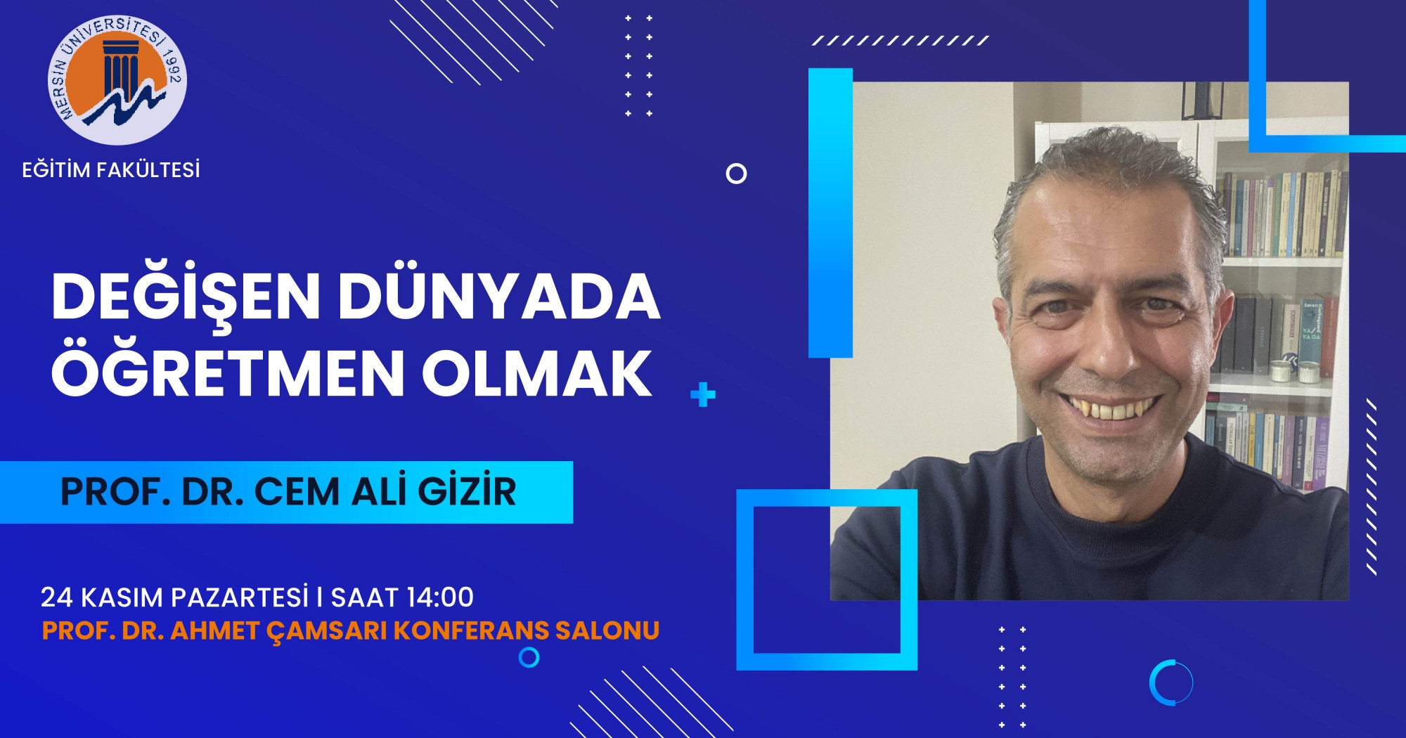 - 24 Kasım Pazartesi günü saat 14:00'da Prof. Dr. Cem Ali Gizir tarafından "Değişen Dünyada Oğretmen Olmak" konulu bir konferans verilecektir.