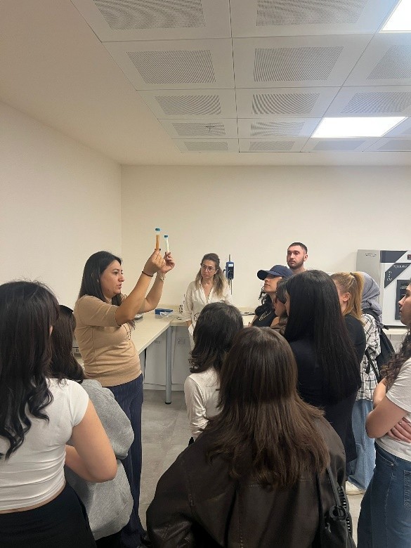 Bölüm Başkan Yardımcısı Dr. Öğr. Üyesi Ayşin Güzel Değer, Bölüm Öğretim Elemanlarından Öğr. Gör. Dr. Günseli Bobuş Alkaya, Öğr. Gör. Dr. M. Kadir Esen ve Öğr. Gör. Merve Çarıkçıoğlu eşliğinde gerçekleşen ziyarette, laboratuvarda bulunan her cihazın gıda sektöründeki kullanım alanları ve hangi ihtiyaçlara karşılık geldiği öğrencilere detaylı bir şekilde aktarıldı.