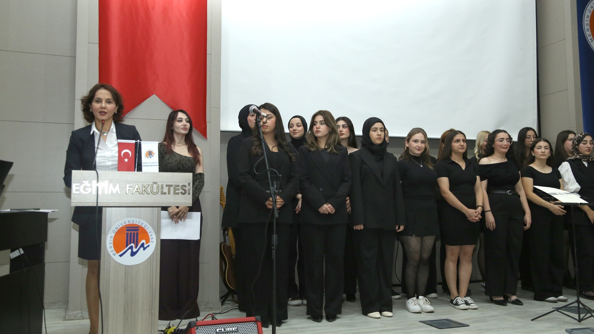 Açılış konuşmasının ardından Eğitim Fakültesi öğrencilerinden oluşan koro sahne aldı. Doç. Dr. Ersin Turhal şefliğinde gerçekleşen dinletide, piyanoda yüksek lisans öğrencisi Nehir Alya, gitarda ise Yiğit Mehmet Çerçil eşlik etti. Dinleti sonunda koro üyelerine teşekkür belgeleri takdim edildi.