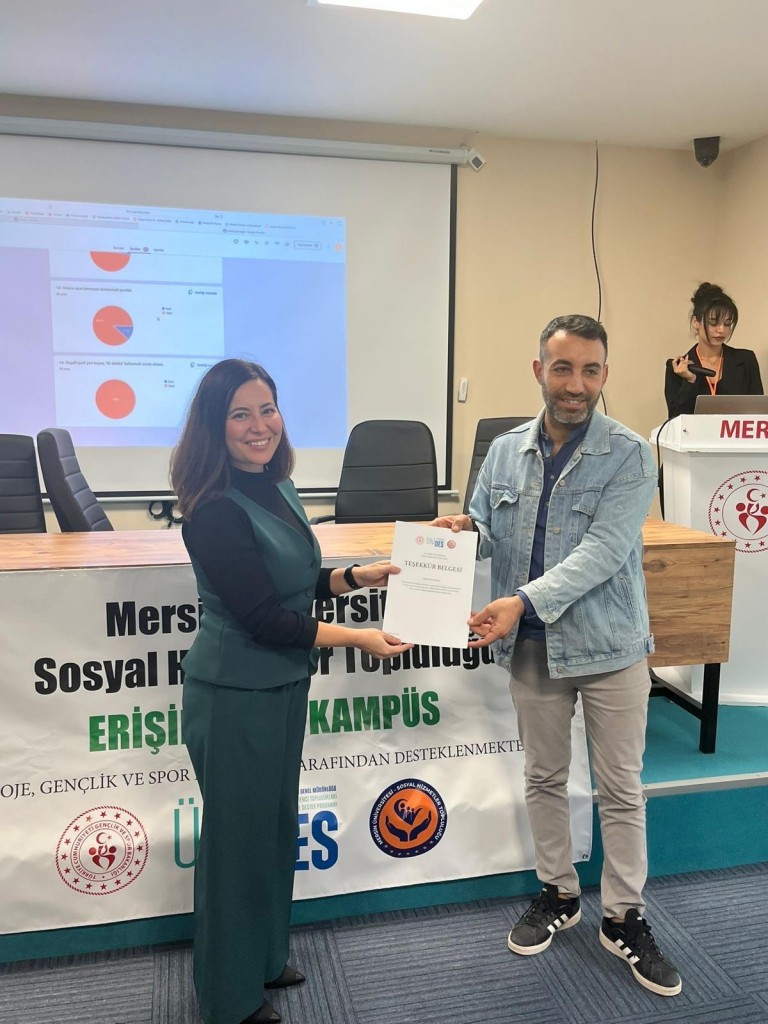 Üniversitemiz Sosyal Hizmetler Topluluğu tarafından, 3 Aralık Dünya Engelliler Günü kapsamında hazırlanan “Erişilebilir Kampüs” projesi hayata geçirildi. Gençlik ve Spor Bakanlığı Gençlik Hizmetleri Genel Müdürlüğü tarafından Üniversite Öğrenci Toplulukları İş Birliği ve Destek Programı (ÜNİDES) kapsamında destek almaya hak kazanan proje, 5 Aralık 2025 tarihinde Mezitli Engelsiz Gençlik Merkezi konferans salonunda gerçekleştirildi.
