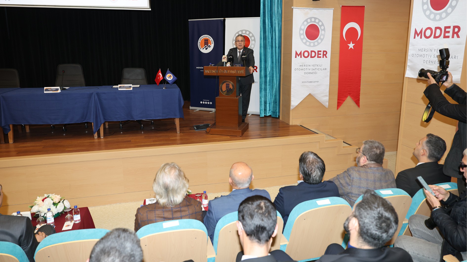 Böylesine önemli bir yapının Mersin’e ve Üniversitemize kazandırılmasının çok kıymetli olduğunu vurgulayan Mersin Valisi Atilla Toros, “Otomotiv sektörüyle ilgili son derece önemli bir çağdayız. Bu çağı hiçbirimizin ıskalamaması lazım. Proje, modern derslikler ve uygulama atölyeleri ile beraber son derece değerli bir çalışma olacak. Bu iş birliği modelinin tüm ilimize ilham kaynağı olmasını diliyoruz. Çünkü biz sanayi şehriyiz, lojistik şehriyiz, tarım ve turizm şehriyiz. Bu dört önemli alanın her birisinde çok önemli işler yapıyoruz. Bu alanlardaki çalışmalarda, çabalarımızı birleştiriyor olmanın büyük güç katacağını düşünüyorum. Rektör hocamıza, MODER Başkanı ve değerli üyelerine aldıkları inisiyatif için şükranlarımı sunuyorum. Üniversitemize, Mersin’imize ve ülkemize hayırlı uğurlu olsun.” şeklinde konuştu.