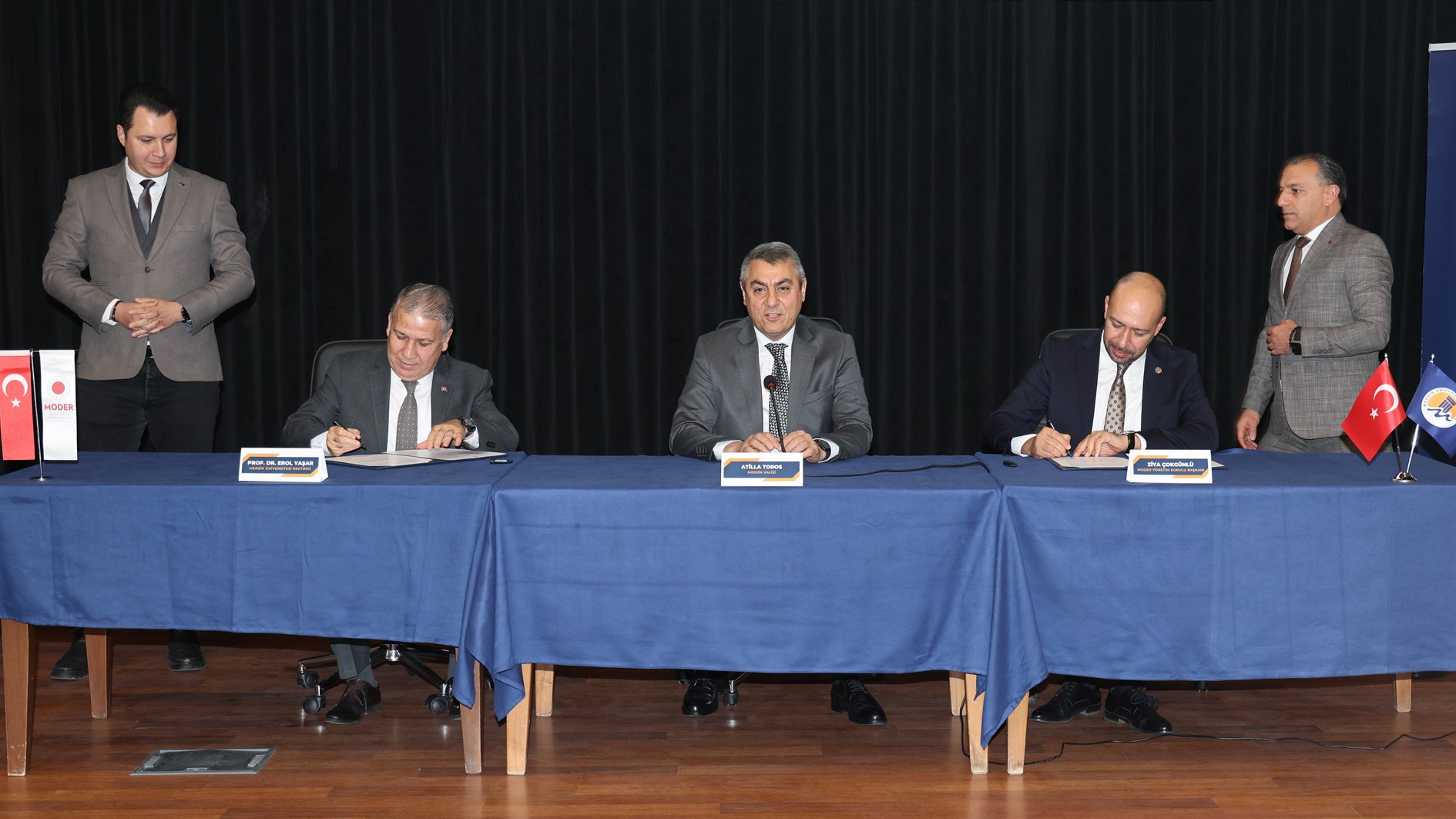 Konuşmaların ardından Vali Atilla Toros, Rektörümüz Prof. Dr. Erol Yaşar ve MODER Başkanı Ziya Çokgünlü, hazırlanan protokolü imzaladı.