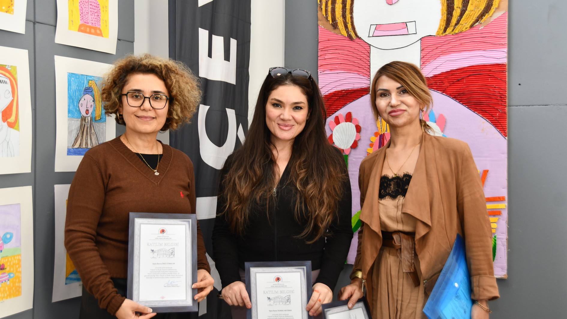 Atölye çalışmasının ardından Öğr. Gör. Rukiye Gök ve Dr. Öğr. Üyesi Banu Yılmaz Akyürek, projeye sağladıkları katkılardan dolayı ZİÇEV Kurum Müdürü Burcu Ünlü Türkcan’a ve etkinliğe katılan öğrencilere teşekkür belgesi takdim etti.