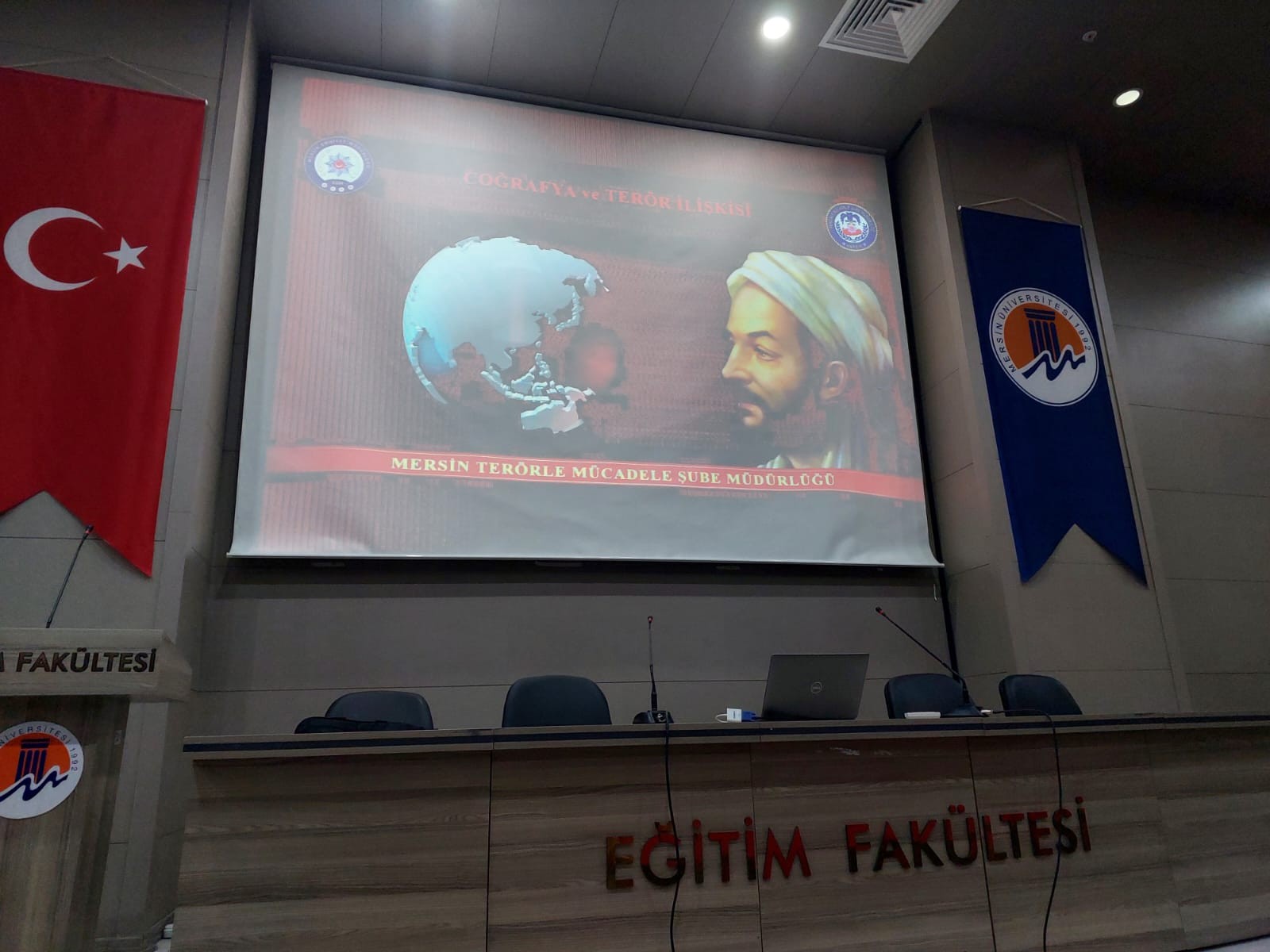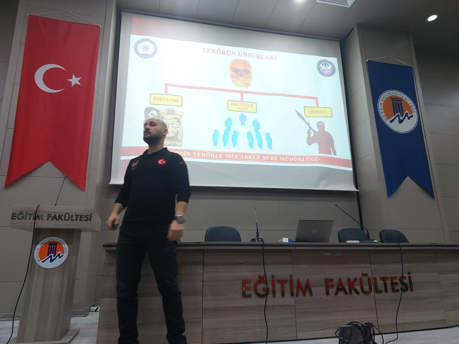 Fakültemiz öğrencilerine yönelik olarak, Mersin Emniyet Müdürlüğü Terörle Mücadele Şube Müdürlüğü tarafından Terörle Mücadele Bilgilendirme ve Önleme Faaliyetleri Semineri düzenlendi. Öğrencilerin farkındalık düzeyini artırmak, olası risklere karşı bilinçlendirmek ve toplumsal güvenliğe yönelik temel bilgi akışını sağlamak amacıyla gerçekleştirilen seminer, 10.12.2025 tarihinde Prof. Dr. Ahmet Çamsarı Konferans Salonu’nda yapıldı.