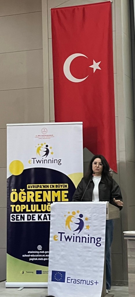 Ayrıca, daha önce Dr. Onbaşılı danışmanlığında Erasmus+ Blended Intensive Programme (BIP)’a katılan Sınıf Öğretmenliği öğrencileri Nagihan Taşkara, Fatmanur Ateş ve Cennet Dilara Korum, proje kapsamında edindikleri deneyimleri katılımcılarla paylaştı. Dr. Onbaşılı, yakın zamanda başlayacak olan “ESEP ve eTwinning’e İlk Adım: Öğretmen Adayları için Mentörlük Temelli Proje Geliştirme Programı” hakkında bilgi vererek bu programa katılacak öğrencilerin ilk eTwinning projelerini hayata geçireceklerini belirtti.